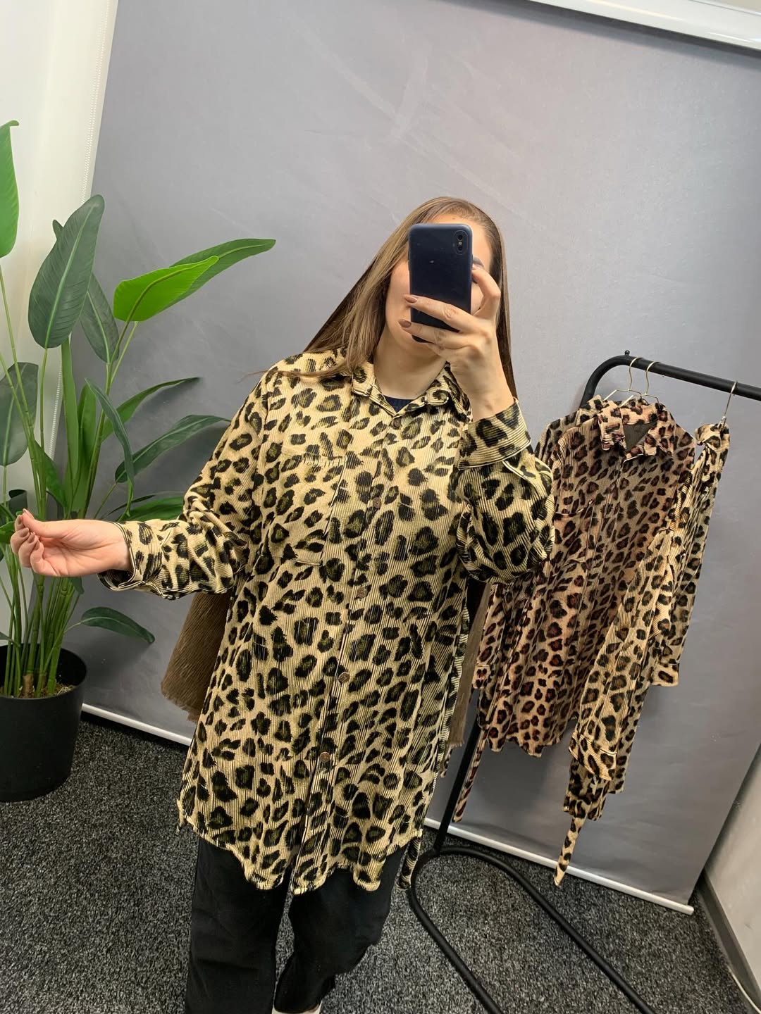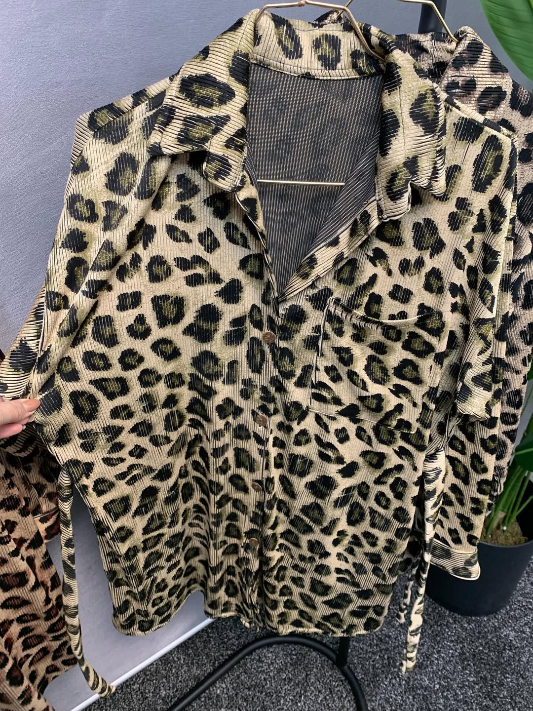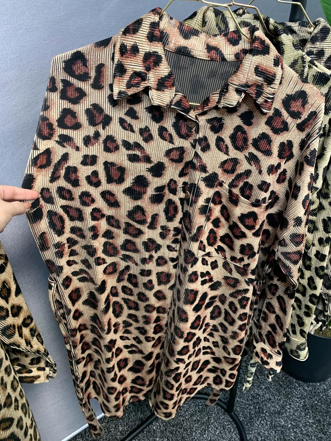 شومیز مانتویی پلنگی با پارچه پلیسه ی زیکو که الان ترند شده و قد ۹۰ سانت دارد. سایز ۴۴/۴۶ تا ۵۲/۵۴. بند تنظیم سایز دارد.