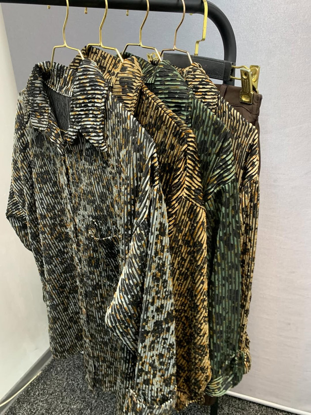 زیبااااترین ست امسال با شومیز پلنگی زیکو و شلوار موکا کرپ دبل. قد شومیز بالای ۸۰ سانت جنس پلیسه زیکو دور سینه و باسن اندازه میشه. شلوار نیم بگ مازراتی دبل با پارچه جون دار و محکم.
