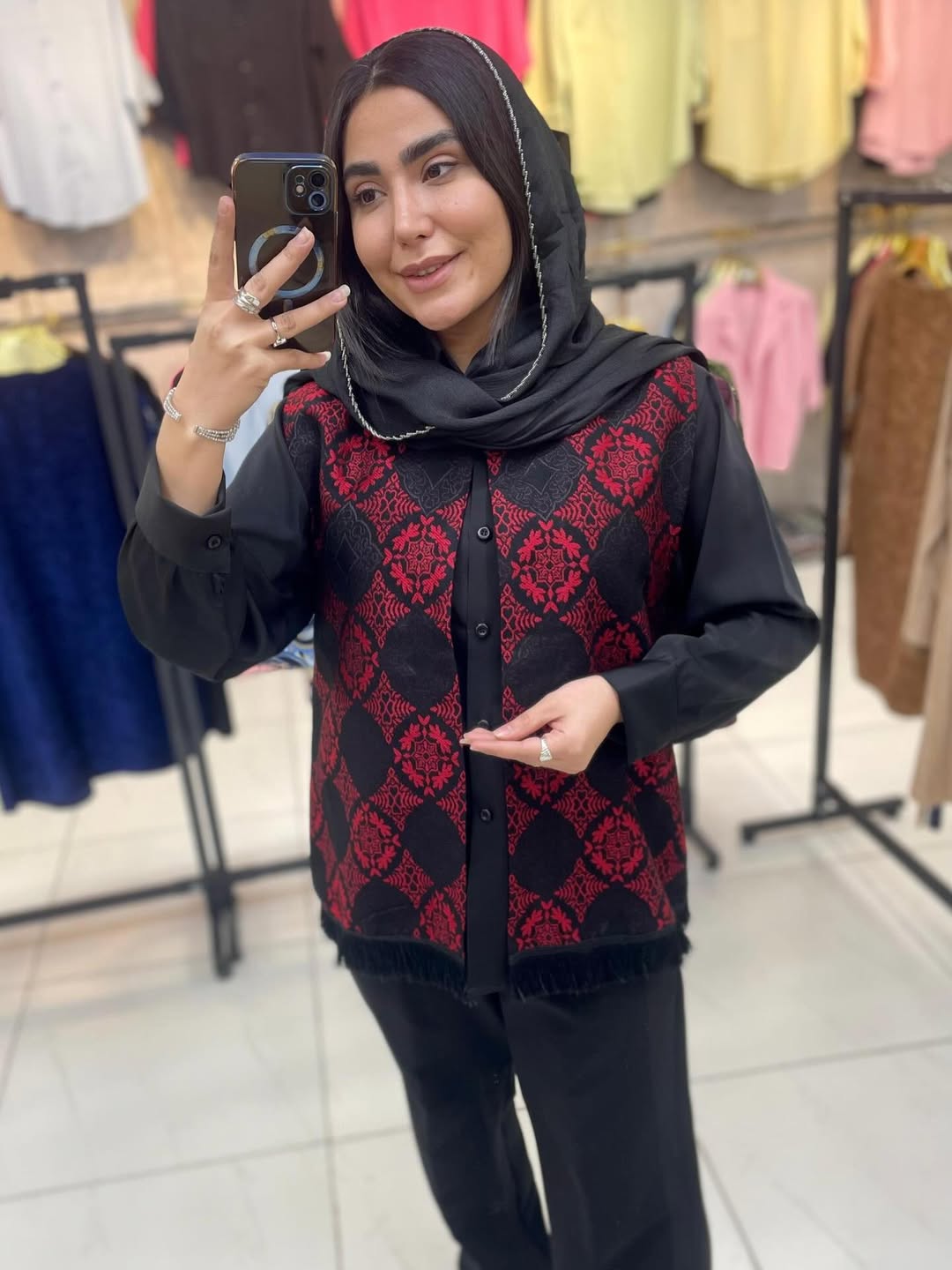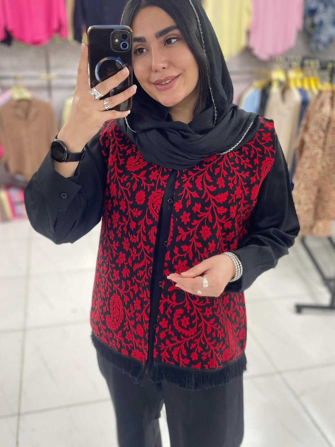ست دو تیکه شامل جلیقه و شومیز الیزه که بصورت جدا هم قابل سفارش است. قد جلیقه ۱۲۰ سانت و قد شومیز ۶۵ سانت. جنس الیزه و رنگها سفید و مشکی.